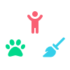 Minden az egyben: gyermekfelügyelet, takarítás és kisállat-felügyelet.